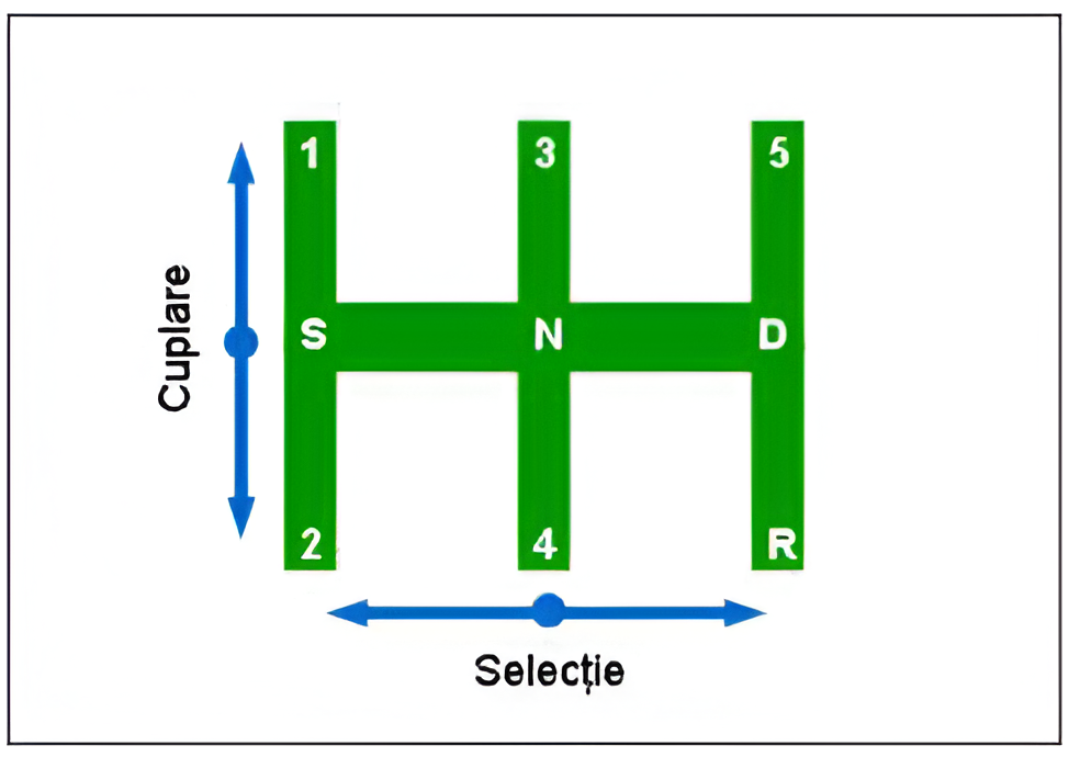 Selecţia planului presupune deplasarea levierului în partea stângă sau dreaptă în raport cu poziţia neutră. Cuplarea treptei presupune deplasarea înainte sau înapoi a levierului după selecţia planului.