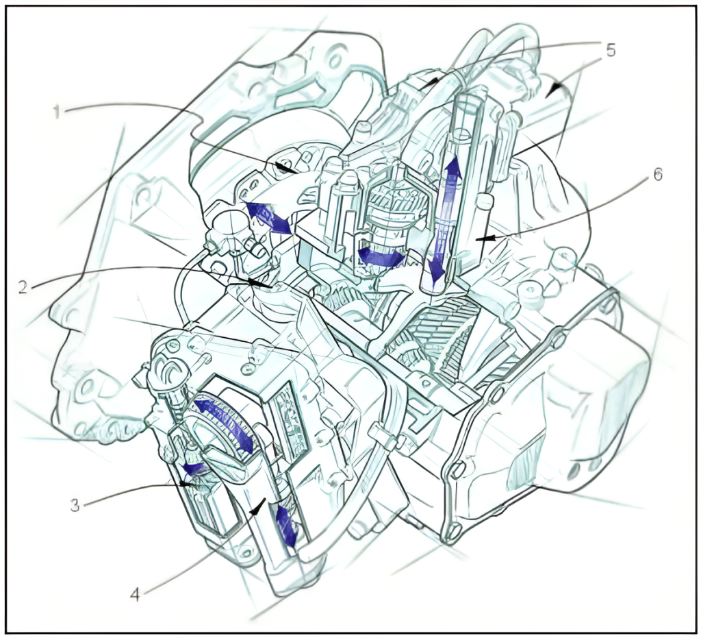 Actuatorul pentru ambreiaj conţine în aceeaşi carcasă, pe lângă sistemul de acţionare, modulul electronic de control al transmisiei (TCU – Transmission Control Unit).