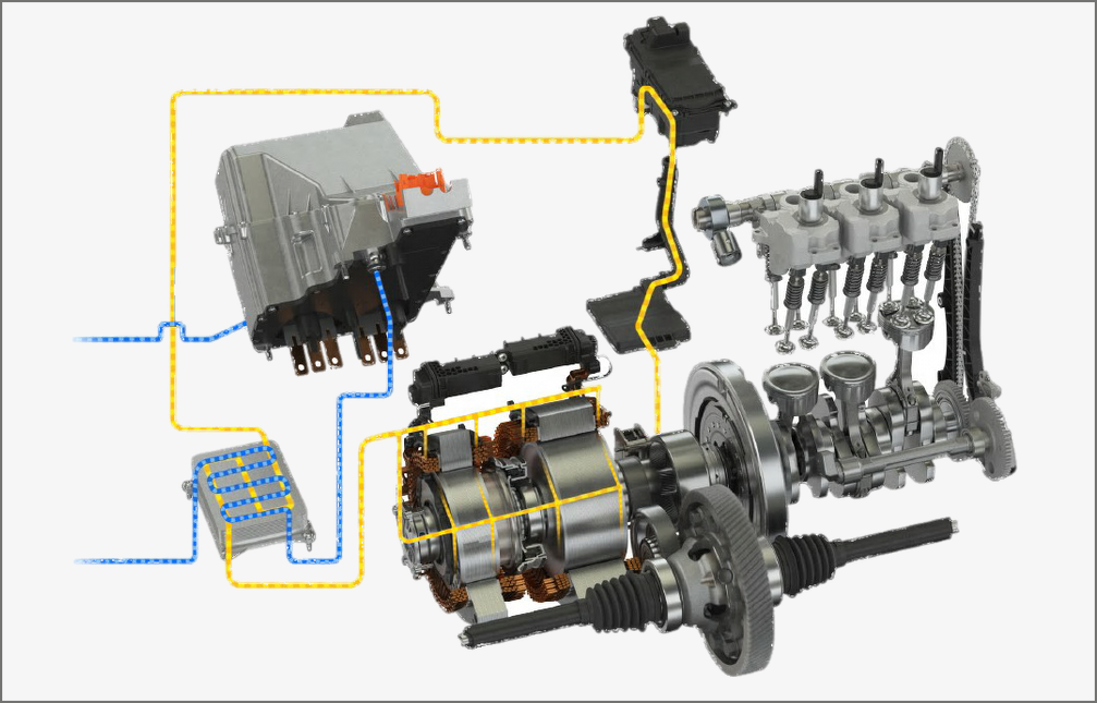 Viteza maximă de rotație actuală a motorului cu ardere internă este de 4.700 rpm, ceea ce corespunde unui motor pe benzină modern turboalimentat. Puterea ambelor motoare electrice este adaptată în primul rând în funcție de cerințe prin variația lungimii active.