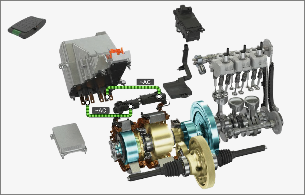 Închiderea ambreiajului și, prin urmare, trecerea la modul paralel se realizează hidraulic în mai puțin de 200 ms după sincronizarea vitezelor motoarelor electrice.