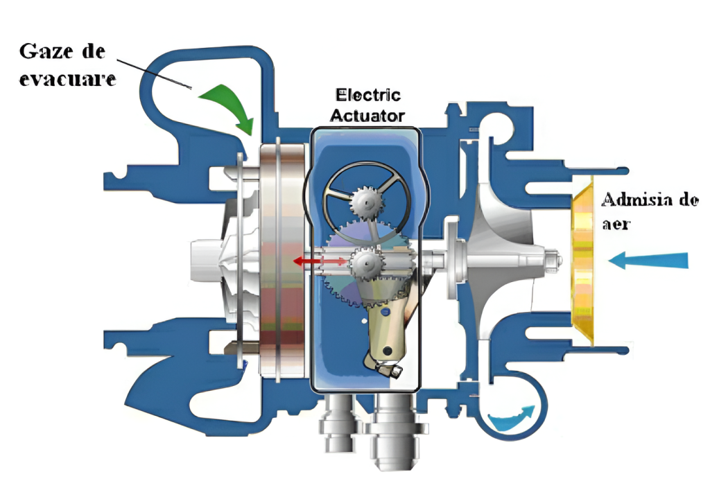 TURBOCOMPRESORUL CU GEOMETRIE VARIABILĂ, CU ACTUATOR ELECTRONIC