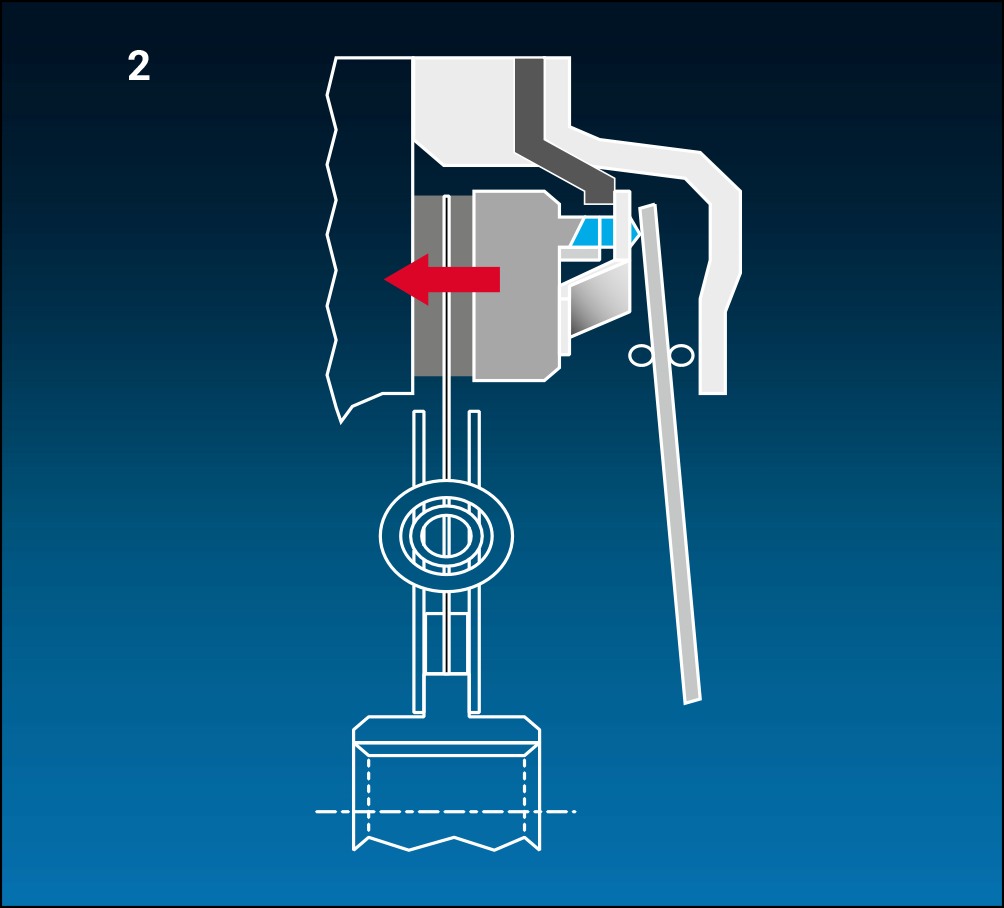 Stopperul ridică arcul de reținere de la inelele de reglare, iar glisorul reduce spațiul. (Fig 6)